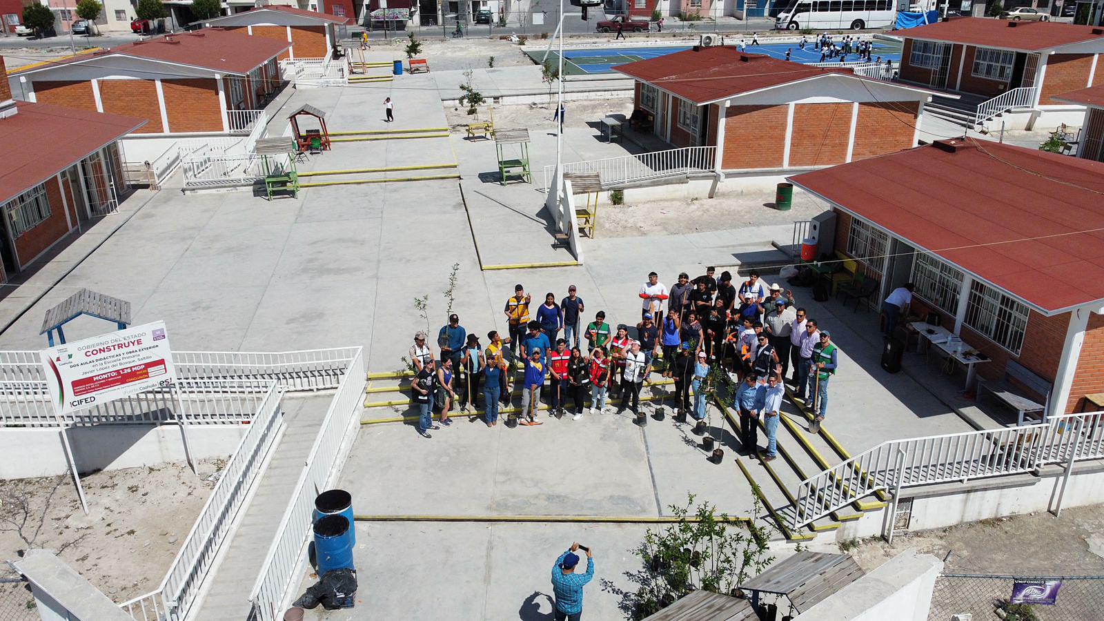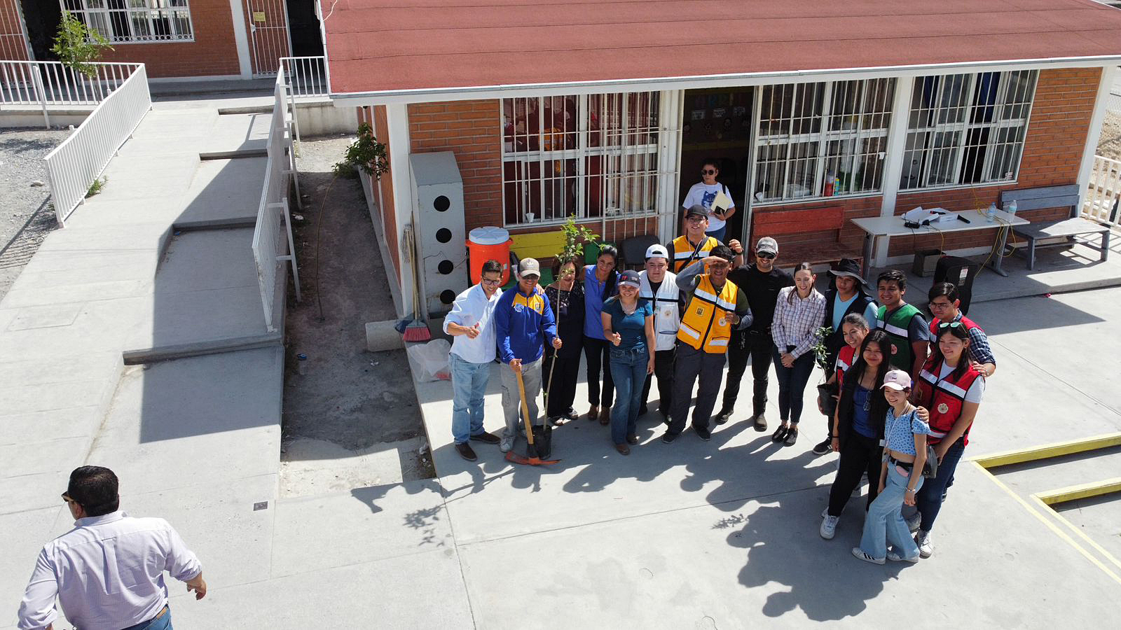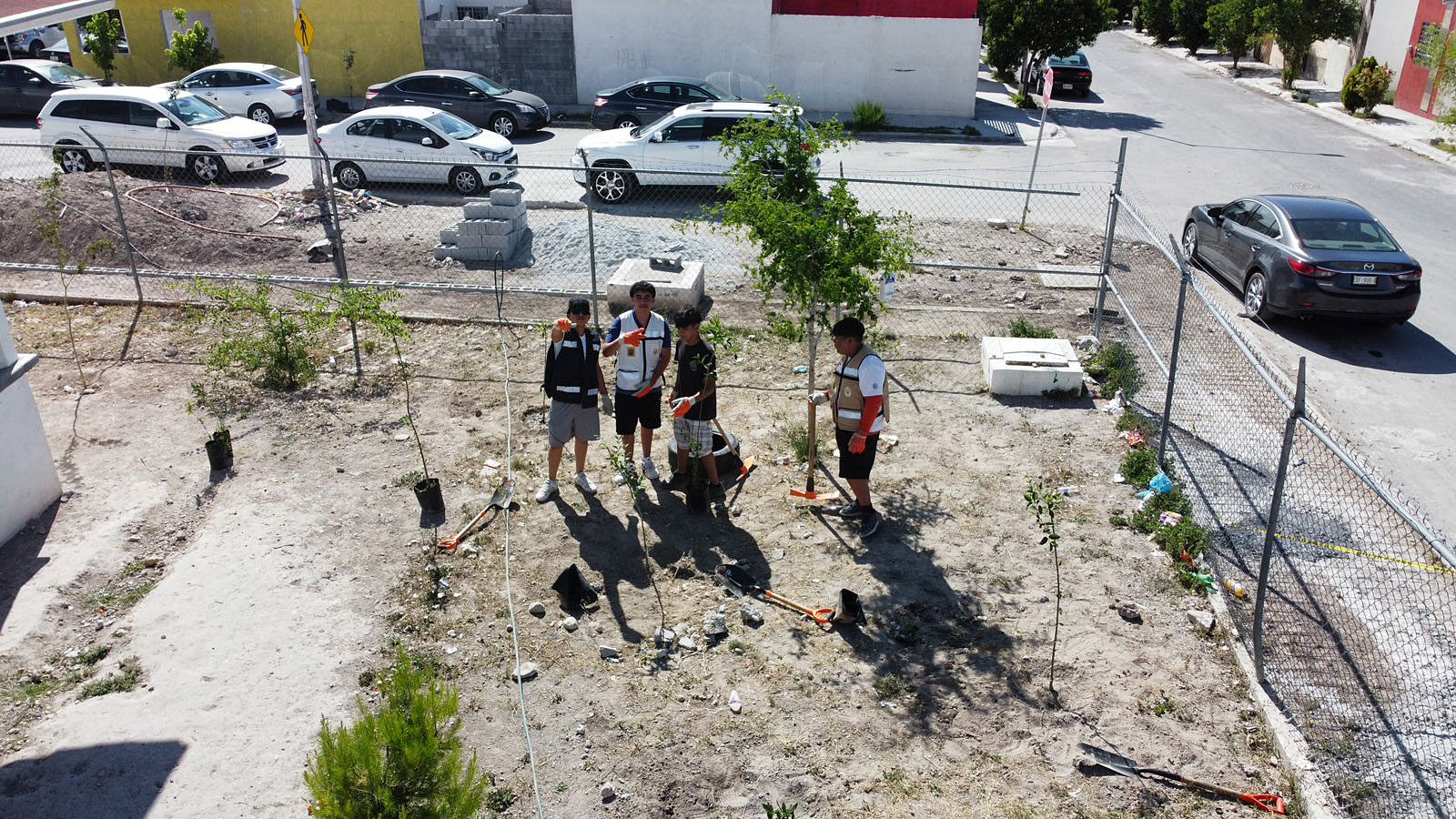 Lucia Reyes Ramos y Eduardo Rodríguez de la Paz, jóvenes del Equipo Azul, explicaron que el objetivo era dotar a la escuela de más árboles para proporcionar sombra y aliviar el intenso calor que experimentaban los menores, destacaron el esfuerzo conjunto del equipo y la colaboración con Sofía Franco Villalobos, directora de Medio Ambiente y Desarrollo Sustentable del gobierno municipal, y la coordinación con sus compañeros para obtener los 50 árboles.