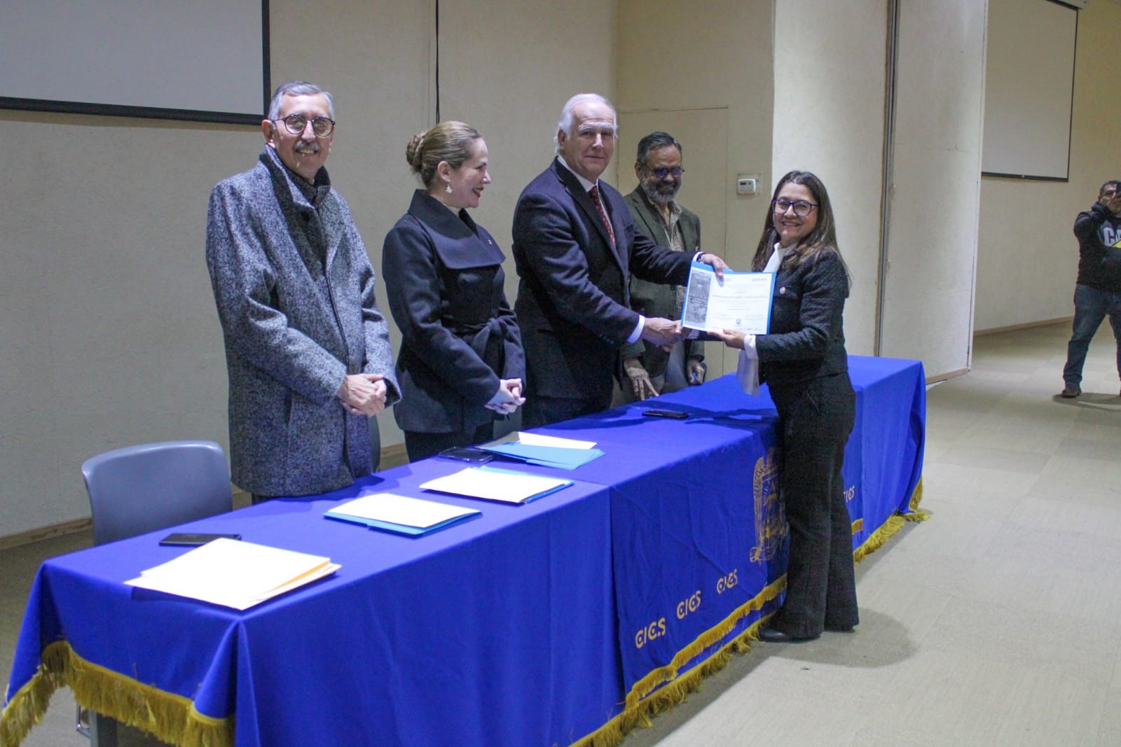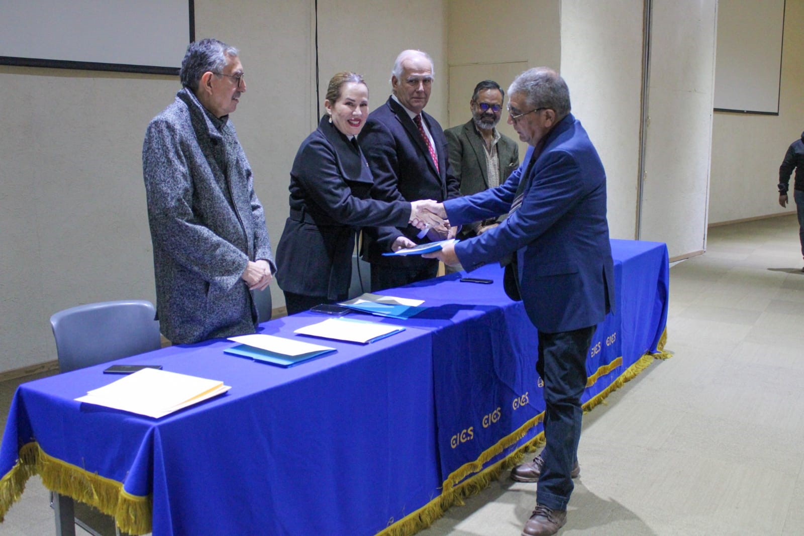 A la ceremonia efectuada en la Sala 2 de la Infoteca “León Felipe”, acudió en representación del rector de la UAdeC, Octavio Pimentel Martínez, la coordinadora de la Unidad Laguna Sandra López Chavarría; en representación del alcalde de Torreón, Román Alberto Cepeda, el director del Instituto Municipal de Cultura y Educación (IMCE), Antonio Méndez Vigata; el presidente de la ANHG Filial Coahuila, Carlos Román Cepeda González; el director del Centro de Investigación en Ciencias Sociales, Lerins Varela Castro y docentes.