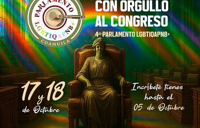 El cuarto parlamento LGBTIQ+ se llevará a cabo en Coahuila los días 17 y 18 de octubre, con el lema