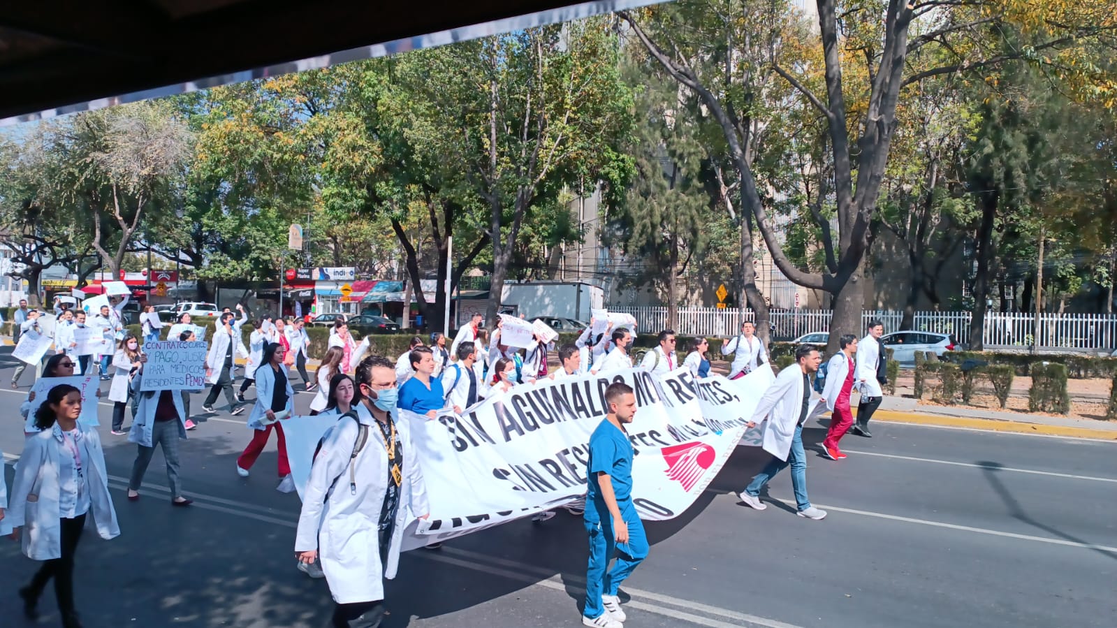 También un grupo de 60 médicos y enfermeras se manifestaron porque los despidieron del Hospital Ajusco Medio, sin sus quincenas